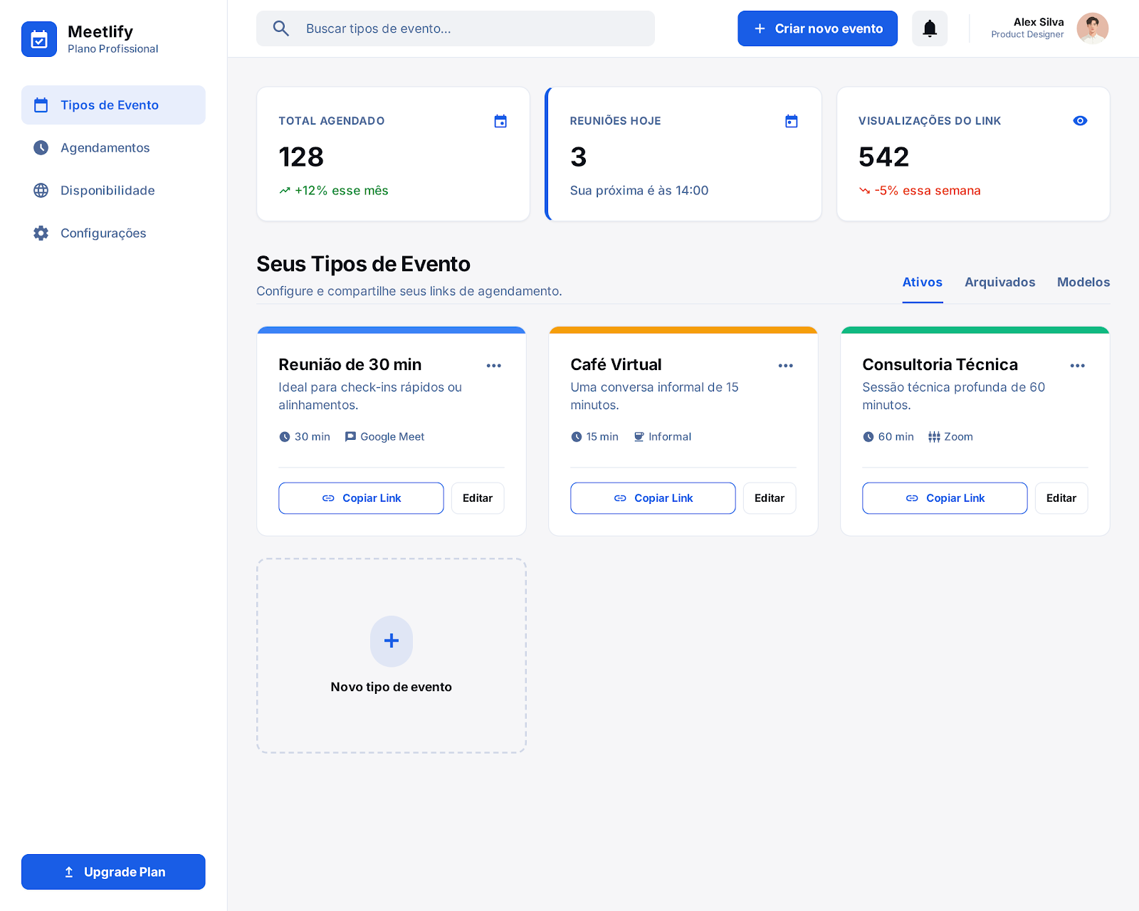Simplifique sua agenda profissional com o Meetlify — seu agendador de reuniões inteligente com formulários personalizáveis para captar informações importantes antes de cada encontro.